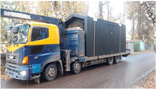 Где применяется: на разгрузке паллетов до 1.5 тонн, с погрузкой на себя и с завозом на участок или склад. Проходимость слабая, поэтому в условиях бездорожья, лучше не рисковать и заказывать кран-манипулятор вездеход. Можно применять для перевозки бревен до 8-ми метров или дачных бытовок размером 2.4 на 4 метра. Для строительных бытовок он не подходит. Лучше выбрать манипулятор со стрелой 5 или 7 тонн. Перевозка и разгрузка деревьев высотой до 5-6 метров.